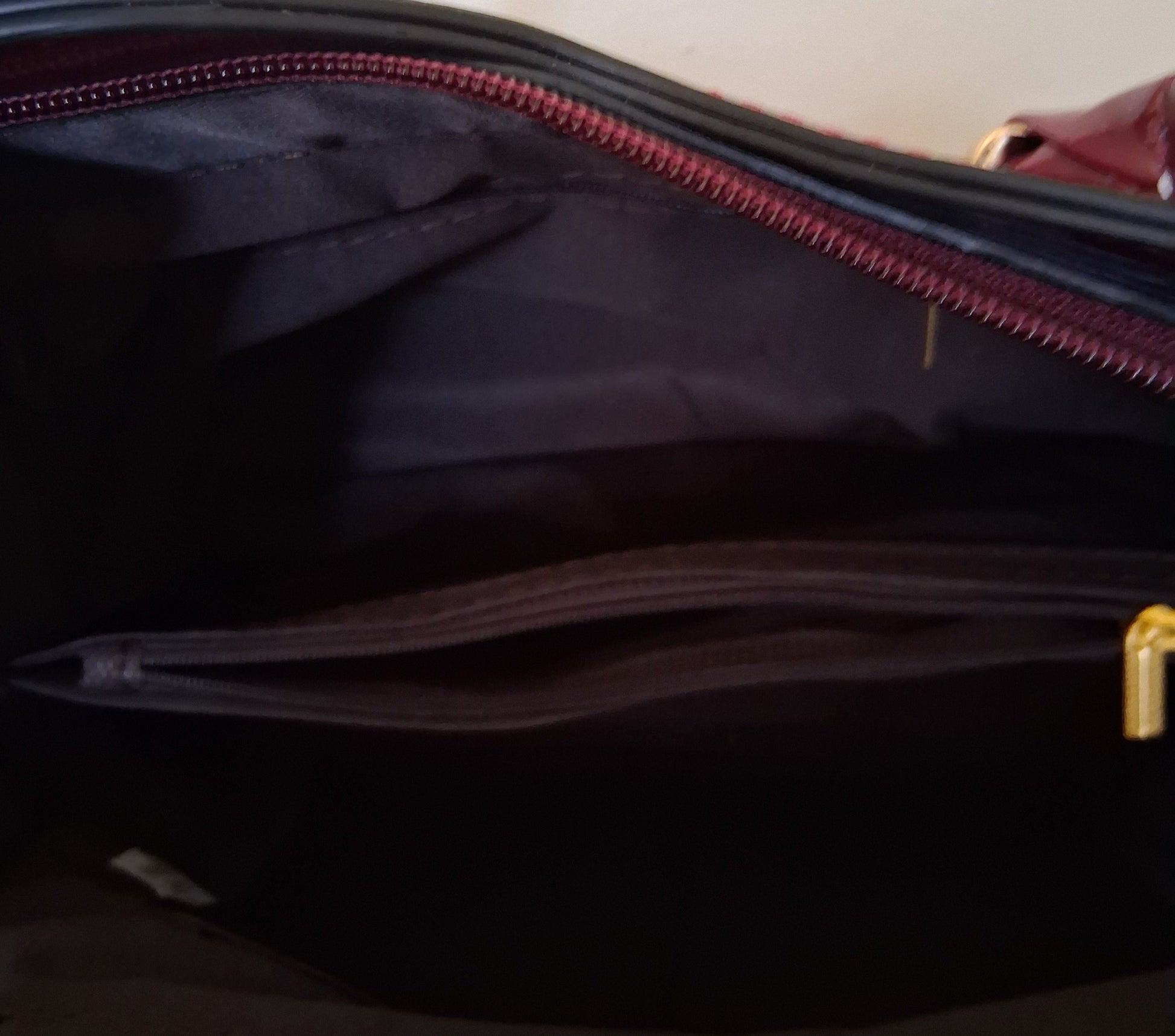 Large Burgundy-Red Faux Leather Handbag with Decorative Bow